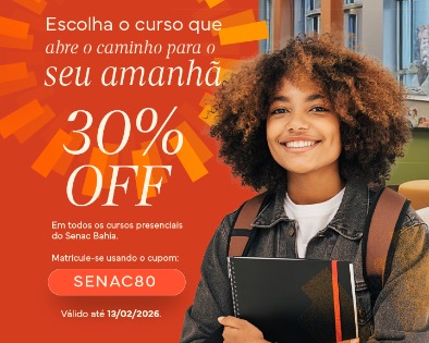Senac Bahia comemora 80 anos com campanha especial de 30% de desconto em cursos